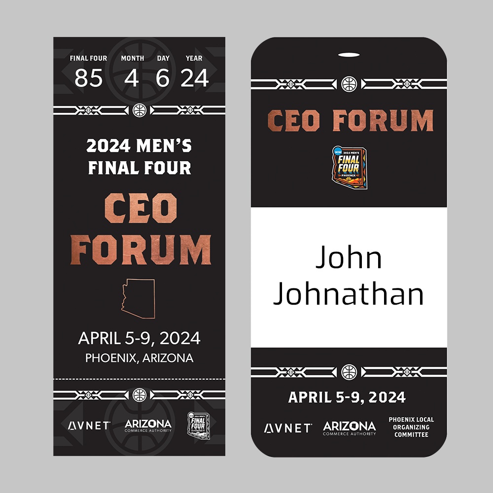 Collaborating closely with the Phoenix Host Committee for the 2024 Men’s Final Four, I worked on various projects essential for the months leading up to the April events. From crafting digital marketing banners for sweepstakes to designing save the dates and large format graphics, as well as compiling a comprehensive recap printed and bound book, I enjoyed the diverse range of projects that I had the opportunity to support. Here are some highlights of the work I had the pleasure of producing.